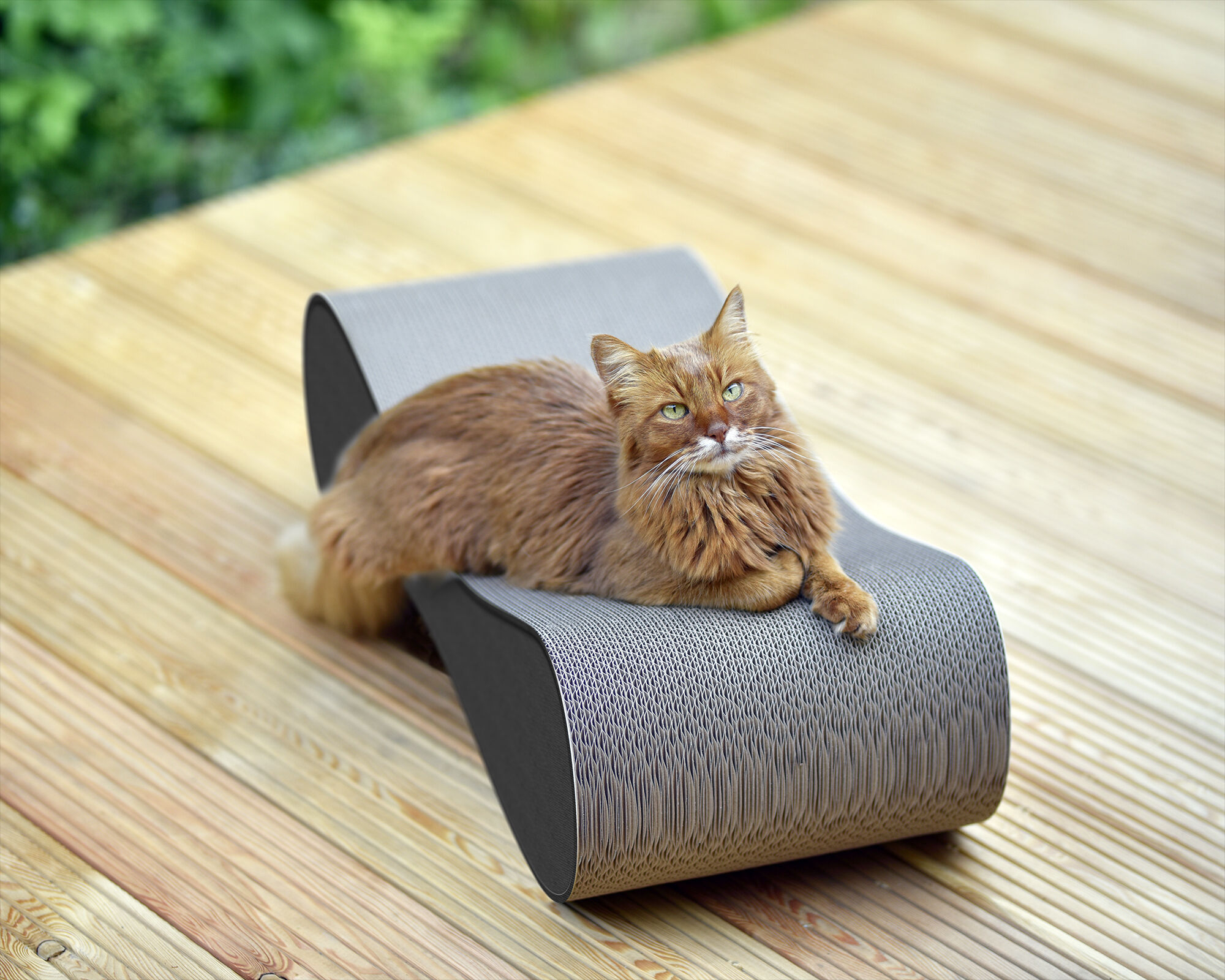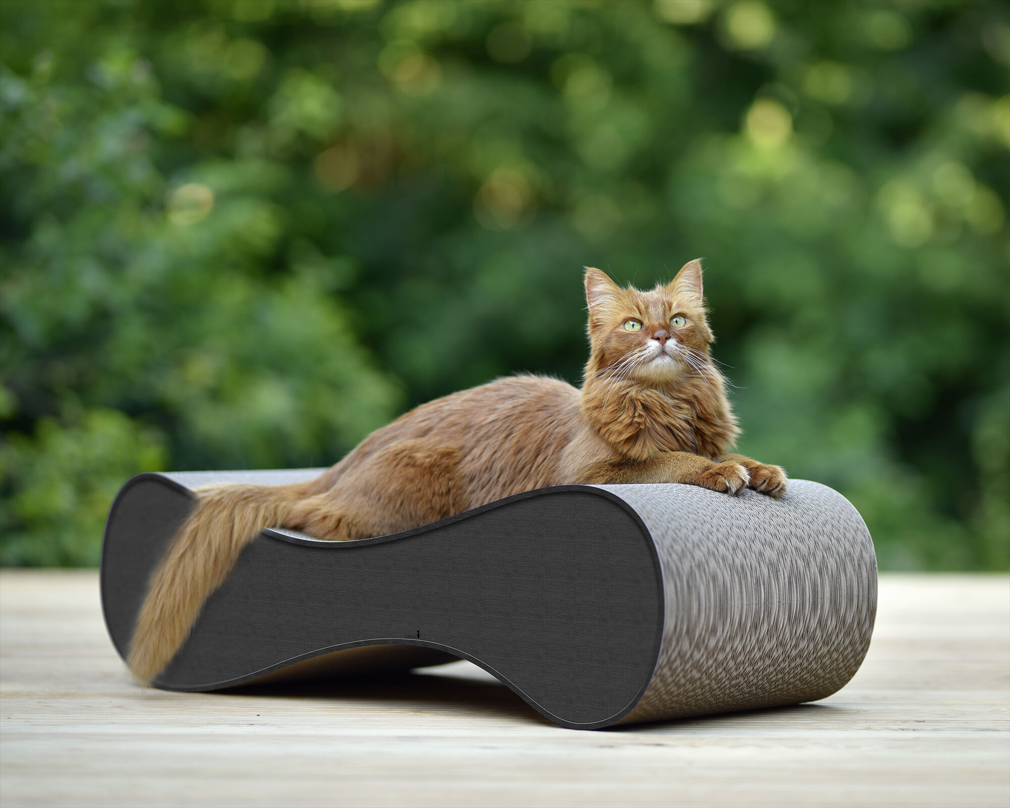 Kaum ausgepackt und schon der Lieblingsplatz. Die leicht geschwungene Form sieht nicht nur gut aus, sondern scheint auch ein Segen für verwöhnte Großstadttiger. Sie wollen gar nicht mehr woanders liegen. Zum Glück haben wir ein zweites Kratzmöbel (Singha) gekauft - so haben wir zwei zufriedene Katzen.